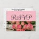 RSVP casera escrito en un elegante guión negro contra fondo rosa pastel, rosas rosa pálido Bonito y ramo de vegetación. Personalice el reverso en la tipografía negra con un fondo blanco y nítido. Fotografía original y diseño de TamiraZDesigns.
