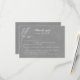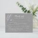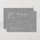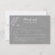 Tarjeta de respuesta Rsvp con opciones de comida con flores de lavanda morada de color agua con fondo gris.