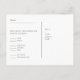 Esta plantilla de RSVP de doble cara incluye una plantilla de texto en AMBOS lados para que añada los detalles requeridos de RSVP incluyendo boda, ducha de bebé, graduación, jubilación, quinceañera, bautismo u otras opciones de menú de eventos y restricciones o alergias a la dieta. Pruebe GRATIS DISEÑADOR EN VIVO de Zazzle (a través de la ficha 'LIVE' de la página del producto para obtener ayuda sobre el diseño y para crear elementos coincidentes. Para obtener información sobre cómo atender a un boda que sea inclusivo para aquellos con restricciones dietéticas y alergias, junto con opciones de menú e ideas para cada tipo de alergia, visite https://www.budgetweddinginvites.com/post/menu-options-for-wedding-guests-with-allergies-and-free-menu-with-ingredients-template-download . aquí hay algunas opciones de texto alternativas de RSVP: 1. Desgraciadamente Declinar - Desafortunadamente, no podré asistir. ¡Gracias por la invitación! 2. Acepto con alegría - ¡Estoy encantado de aceptar tu invitación! No puedo esperar a celebrar contigo. 3. Lo siento, no puedo asistir - lo siento, pero no podré hacerlo. Gracias por incluirme en tu día especial. 4. RSVP entusiasta - ¡Cuéntame! Estoy emocionado de unirme a la diversión. 5. Lamentablemente, no puedo asistir - Tristemente, no podré lograrlo. Les deseamos lo mejor para un evento maravilloso. 6. Acepto con entusiasmo - ¡Sí, me encantaría asistir! No puedo esperar a celebrar contigo. 7. Tristemente Declinar - Desearía poder estar ahí, pero desafortunadamente no podré lograrlo. Gracias por la invitación. 8. Encantador RSVP - ¡Estoy encantado de RSVP con un contundente sí! Espero con ansias. 9.Disculpas por no poder asistir - lo siento mucho, pero no podré hacerlo. Gracias por entenderlo. 10. ¡Felicidad RSVP - ¡Absolutamente! Estaré allí con las campanas puestas. No puedo esperar a celebrar. A continuación, algunas frases más cortas de RSVP: 1. No puedo hacerlo, lo siento. 2. ¡Estará ahí, emocionado! 3. Desgraciadamente, está declinando. 4. ¡RSVPing con placer! 5. Tristemente, no puedo asistir. 6. ¡Cuéntame! 7. Disculpas, incapaces de asistir. 8. ¡Espero con ansias! 9. No es capaz de hacerlo, lo siento. 10. ¡Sí, con placer!