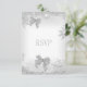 Conjunto de Respuesta de RSVP Elegante Boda Brillo Plata Blanco Lazo Conjuntos de Boda