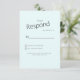 Tarjeta de respuesta de RSVP de boda azul hielo de palma tropical. Cena y baile.