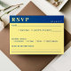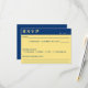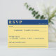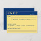 Tarjeta Rsvp de boda azul oscuro y amarillo.