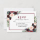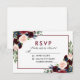 Tarjeta de RSVP de Boda con Acuarela Floral Burdeos Marsala Azul - Reverso Blanco