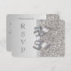 Tarjetas de respuesta personalizadas elegantes de plata para boda con un hermoso patrón impreso de lentejuelas plateadas, un lazo y cinta impresos plateados brillantes y una joya de diamante impresa bonita. Estas tarjetas planas con clase, glamurosas y de moda están decoradas en ambos lados. Invitaciones hermosas, chic, modernas y de tendencia. POR FAVOR, TENGAN EN CUENTA: Estos son gráficos impresos planos, sin lazos, lentejuelas ni partes elevadas reales. El texto, la fuente y el color de la fuente se pueden personalizar. Si necesita ayuda para personalizar su producto, por favor contácteme a través de mi tienda. Estaré encantado de ayudar. Tengo productos que combinan en mi tienda.