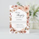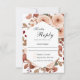 Un diseño de tarjeta de respuesta de boda de acuarela floral boho de fantasía maravillosamente hermoso con una paleta de colores neutros suntuosos en beige, verde, melocotón y toques de rosa y terracota. Un hermoso marco arqueado con acento dorado añade elegancia al diseño. La parte posterior de la tarjeta tiene un hermoso patrón floral coincidente con elementos florales esparcidos por todo el diseño. Personalice con la fecha de respuesta requerida.