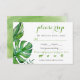 Tarjeta de RSVP de boda de hojas de palma acuarela verde tropical.