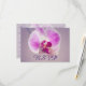 Este diseño presenta una flor de orquídea morada con una lavanda púrpura pálida o un fondo de lavanda polvoriento. Esta tarjeta de respuesta rsvp se coordina con la Invitación a la Boda Orquídea Radiante.