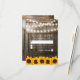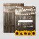 TARJETAS RSVP SUNFLOWER VINEYARD WEDDING | Fondo de barril de roble oscuro, luces de cuerdas de trineo, girasoles dorados amarillos, monograma y plantilla moderna de rsvp. Encontrar otras tarjetas de respuesta de boda de madera en http://www.zazzle.com/special_stationery