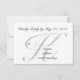 Gris, negro y blanco, RSVP de boda simple con inicial o monograma, personalizado con sus nombres en la parte delantera y la fecha de RSVP, monograma inicial y texto de RSVP en la parte trasera, todo en elegante letra cursiva. Elke Clarke©
