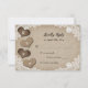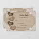Tarjetas RSVP de boda rústica vintage inspiradas en la burlap y el encaje. Personaliza fácilmente estas románticas cartas rústicas de respuesta nupcial con corazones burlap en contra de una estresante borrega y fondo de encaje adornado con luces de cuerda.