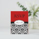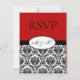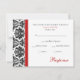 Envíe su correspondencia de eventos con estilo con esta tarjeta rsvp. Este diseño presenta un patrón de damasco blanco y negro con acentos rojos. Complete el aspecto con la invitación coincidente. Por favor, no dudes en contactarme a través de la función de mensaje si necesitas ayuda con este diseño o si quieres añadir una personalización diferente. O puedes contactarme por correo electrónico en zazzlestores@yahoo.com.