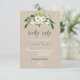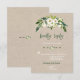 Diseño de tarjeta único y elegante que presenta un ramo de rosas y peonías de acuarela blanca, un divisor floral con flechas como corazones, la escritura moderna "Se ruega responder", sobre un fondo de arpillera. Utilice la herramienta Personalizar para agregar su información, cambiar las fuentes y el color de fondo. Para artículos coincidentes, visite mi colección Rustic White Floral Wood/Burlap.