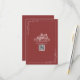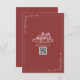 Boda RSVP con ilustracion rústico de granero con borde botánico. El fondo es rojo apagado. Personalice el texto y el código QR.