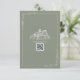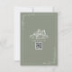Boda RSVP con ilustracion rústico de granero con borde botánico. El fondo es Sage Green. Personalice el texto y el código QR.