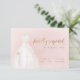 Las elegantes tarjetas RSVP cuentan con vestimenta de boda blanco acuarela con detalles de purpurina dorado brillante sobre fondo rosa negro.