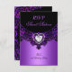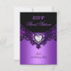 Respuesta de RSVP Dulce Dieciséis 16 Cumpleaños Partido Morado Diamante Corazón Negro 16º Partido de Cumpleaños Invitado Elegante. Invitaciones de Zizzago