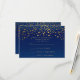 ⭐⭐⭐⭐⭐ 5 Estrellas. Tarjeta de confirmación de boda con lunares dorados y confeti elegante sobre fondo azul marino. Productos coincidentes disponibles. ⭐Este producto es 100% personalizable. *****Haga clic en el botón PERSONALIZAR para agregar, eliminar, mover, cambiar de tamaño, rotar, etc... cualquier gráfico o texto. El 99% de mis diseños en la tienda están hechos en capas. Esto facilita cambiar el tamaño y mover los gráficos y el texto para que se ajusten perfectamente a cada producto. ⭐ (Asegúrese de cambiar el tamaño o mover los gráficos si es necesario antes de ordenar) También puede "TRANSFERIR DISEÑO" a otros productos de Zazzle y ajustar el diseño para que se ajuste a la mayoría de los artículos de Zazzle. (el botón está en la parte inferior derecha de la página) Algunos de los gráficos de texto tienen casillas listas