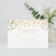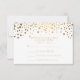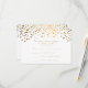 Tarjeta de confirmación de boda en elegante confeti dorado y blanco. Productos coincidentes disponibles. 100% personalizable. Listo para rellenar en la(s) casilla(s) o haga clic en el botón PERSONALIZAR para agregar, mover, eliminar, cambiar el tamaño o cambiar cualquiera de las fuentes o gráficos. Hecho con gráficos vectoriales y/o digitales de alta resolución para una impresión profesional. NOTA: (ESTO ES UNA IMPRESIÓN. Todos los diseños de productos de Zazzle son "impresiones" a menos que se indique lo contrario en el área "Acerca de este producto"). El diseño se imprimirá EXACTAMENTE como lo ve en la pantalla y en el producto... así que asegúrese de que cuando realice cambios en el tamaño de cualquiera de los gráficos o texto, quepa en las áreas correctamente y que su ortografía y redacción sean como le gusten en tamaño, color y fuente. Si tiene alguna pregunta sobre este diseño, por favor contácteme en siggyscott@comcast.net o visite el enlace de mi tienda: http://www.zazzle.com/designsbydonnasiggy?rf=238713599140281