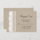 Este es el RSVP coordinador de la invitación a la boda en Burlap para el Lace in White. Se muestra en el papel básico; sin embargo, recomiendo el peso y textura del papel de lino. Nota: se ilustra el encaje. Si se requieren elementos adicionales en esta colección, simplemente contacte con nosotros en prettyfancyinvites@gmail.com con su solicitud.