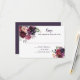 RSVP de boda boho rústica con flores de acuarela exuberantes en púrpura, violeta, rosa, malva y rojo con follaje a juego. La parte posterior de la tarjeta es un púrpura oscuro. La plantilla es fácil de personalizar utilizando una mezcla de fuentes de caligrafía divertidas y manuscritas. Invitación de boda a juego disponible.