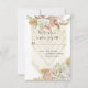 "RSVP Floral de Terracota con Hierba Pampas Rosa Verde." Elegante suite de boda estilo BOHO chic y trendy en tonos terrosos oxidados y terracota. La obra de arte de acuarela incluye tonos neutros terrosos, follaje de palma seca, follaje verde de hoja de salvia y rosas rosadas y suaves combinadas con orquídeas tropicales blancas sobre un fondo de tejido macramé. Pintado por la artista y diseñadora internacionalmente reconocida, Audrey Jeanne Roberts. Derechos de autor.