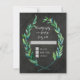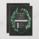 Fondo del estilo de la pizarra. Coincidir con la tarjeta de respuesta RSVP para enviar un correo a la novia (incluye sobres blancos gratuitos). Sin tiempo. Sencillo. Moderno. Mostrar en papel estilo Kraft para la invitación de boda de estilo verde perfecto. Agradable para un boda en un exuberante jardín en primavera o verano, con vegetación y vegetación como telón de fondo y tema de recepción. Para las parejas con conciencia ecológica que desean una paleta de colores verde para su decoración boda, y la naturaleza como su foco, estas hojas pintadas a mano en acuarela se envuelven alrededor de tu texto de invitación con una elegante simplicidad. Se entrelazaron como sus corazones - y sus familias. Se puede utilizar para un ambiente rústico de granero, un jardín bajo los árboles, o una granja o un parque. Para que coincidan, hay disponible una colección y un conjunto completo de invitaciones a la boda.
