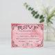 Facilite a sus huéspedes la respuesta a su invitación con esta encantadora postal de boda/Fiesta de color rosa y negro de color rosa y negro. La parte posterior de la postal se puede personalizar con el nombre y la dirección donde los huéspedes deben devolver la tarjeta. Puede personalizar fácilmente la tarjeta con la información de su fiesta. Puede cambiar los estilos de fuente y el color de fondo para que coincidan con los colores bodas. Las tarjetas RSVP color de agua rosa pueden personalizarse y utilizarse para... * Bodas * Fiestas - graduaciones, aniversarios, cumpleaños, etc * Eventos de ventas y negocios * Duchas de novias y bebés * Organizaciones benéficas / recaudadoras de fondos. Desplácese hacia abajo para ver los productos coincidentes que pueda disfrutar.