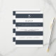 PALETA DE COLORES: azul marino y blanco COLECCIÓN DE DISEÑO: Tarjetas de respuesta RSVP de diseño vertical coincidente con opciones de menú (simplemente elimine o reemplace el texto en esa línea si no las necesita). Con un tema de diseño chic y moderno de franjas anchas, esta invitación tiene un estilo contemporáneo de moda. Cada capa de texto alterna con el azul oscuro y el blanco para un efecto simple pero impactante. Gráfico audaz, pero elegante y con estilo. Tenemos un conjunto de productos completo para coordinar. La inicial monograma y la información de RSVP son fáciles de personalizar con los campos de plantilla de personalización.