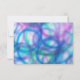 Diseño RSVP con elegante escritura en color púrpura. El diseño colorido impreso en este artículo se creó a partir de una obra de arte pintada con un pincel de aire. Este arte abstracto cuenta con remolinos, curvas y espirales de colores azul claro, violeta y verde jade. El diseño es un arte enérgico, divertido y creativo. La imagen que aparece se usa con el amable permiso de los artistas de peces voladores.