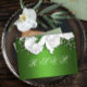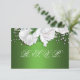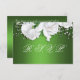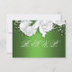 Bonita y elegante boda verde floral RSVP con un magnífico ramo de rosa blanco impreso en la parte delantera de la tarjeta, y un pequeño ramo blanco en el reverso.