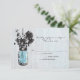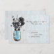 Perfecto para un boda de estilo rústico o tal vez te guste Mason Jars! Viejo Blue Mason Jar vintage colgado en un gancho con flores silvestres contra un granero templado. Colores de primavera de enfriamiento. Si tiene alguna pregunta sobre este diseño o desea cambiar de color, por favor envíeme un correo electrónico a paula@labellarue.com También compruebe que las tarjetas de INVITACIÓN, RECEPCIÓN e INVITACIÓN DE BODA coincidan.