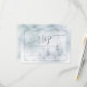 RSVP | Plata Blue Winter Wonderland - Diseño original de ©WhimsicalArtwork™ - Una escena de invierno color azul plateado con pinos pintados a mano y suficiente nieve en las ramas para recordarle un día de invierno crujiente en el bosque - rodeando esto con un dominante blanco translúcido en un marco plateado y azul - cúbralo con una caligrafía guiada a mano en gris y tienes la boda perfecta para el cumpleaños, la ducha de bebé suite de invitación. Una combinación de caligrafía de escritura combinada con un diseño de texto de estilo minimalista y contemporáneo lo convierte en una suite boda de estilo de tendencia. Esto forma parte de una colección de papel de boda con accesorios bodas a juego de BarefootBride™.