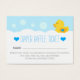 It's a Boy! ¿Está planeando un baño de burbujas o una ducha de bebé con temática de pato? La tarjeta Baby Shower Diaper Raffle Card de Rubber Ducky Boy es una opción adorable para duchas de bebé para niños. Tiene un pato amarillo dulce con un corazón azul en el ala rodeado de burbujas de baño. Esta tarjeta de rifa le ayudará a añadir ese toque especial a su ducha de bebé. No te olvides de vincular el tema fiesta con la coordinación de productos diseñados por Enchantcapy Design Company.