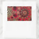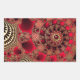 Un brillante diseño fractal con espirales ornamentales de rojo oscuro y vívido, recubierto de fibra de oro como conchas metálicas y lleno de rúbricas brillantes.