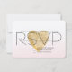 Tarjeta de Confirmación de Boda con Corazón Dorado y Rosa Ombré