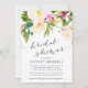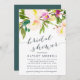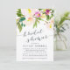La elegante y moderna ducha de novias floridas con flores floridas ofrece un ramo de flores de color pastel etéreo en tonos crema y rosa rubor, con un acento botánico verde. Personalice con sus detalles de ducha de novia en la elegante tipografía azul de medianoche acentuada con caligrafía de estilo manuscrito. Las tarjetas cambian a verde jasper sólido.