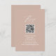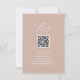 Elegante Script Rubor Pink Minimalista Boda QR Código RSVP Tarjeta de gabinete. Celebra tu día especial con este elegante y hermoso diseño de invitación a la boda para embellecer tu ocasión especial. Todos los textos están preorganizados para que puedas personalizarlos fácil y rápidamente con tus propios detalles.