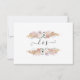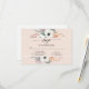Rubor Floral Boho Pampas Hierba Palma Follaje RSVP tiene un fondo rosa pálido con flores blancas, hierba boho pampas y hojas de palma tropicales secas para una tarjeta de respuesta RSVP de estilo bohemio bonito. Sus iniciales de monograma en el reverso con racimos florales. Derechos de autor, Audrey Jeanne Roberts, artista y diseñadora de productos licenciada internacionalmente.