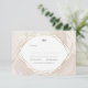 Este conjunto de invitados a la boda de moda presenta un fondo de mármol rubor y un marco geométrico de oro falso. En la parte trasera hay un lujoso diseño de imitación de oro. La tipografía moderna le da un toque elegante a este diseño minimalista de Kitty Pie Prints.