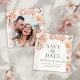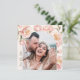 Elegante floral Guardar la invitación de fecha, invitación a la foto cuadrada, con peonías rosadas onduladas en arco boho.