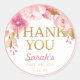Muestre su apreciación con esta elegante ducha de bebé rosa y dorado, gracias pegatina. Diseñado con flores de acuarela suave y acentos purpurinas de oro falsos, este pegatina redondo es perfecto para sellar bolsas de tratamiento, cajas de favores o sobres. Personalízalo con los detalles de tu ducha para un agradable toque final.