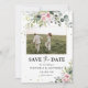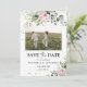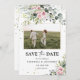 Rubor Pink Greenery Save The Date with Photo Card. Esta elegante y elegante invitación a guardar la fecha cuenta con magnífica acuarela pintada a mano Rubor Pink Greenery. Encontrar elementos coincidentes en la colección Watercolor Eucalyptus Rubor Pink Greenery Collection.