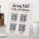 El moderno diseño del código QR de señalización comercial, incluye un elegante guión de caligrafía de moda. Este código QR conéctese con nosotros para animar a su cliente a conectarse con usted en su medio social, visitando su sitio web para ver sus servicios y promoción y más.