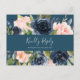 Esta carta de color azul marino y ruidoso es perfecta para un boda floral. El diseño es clásico y elegante, con un fondo azul verde azulado, y está decorado con un acuarela de color azul marino moderno y flores rosas rubias. Esta tarjeta postal de respuesta boda le pregunta a los clientes qué comida desean en su recepción.