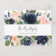 Esta tarjeta postal RSVP es perfecta para un boda floral. El diseño es clásico y elegante y cuenta con un acuarela de color azul marino moderno y flores rosas de color rosa. ¡Elabore su lista de invitados bodas y su lista de canciones de la pista de baile al mismo tiempo! Esta postal de respuesta boda le pregunta convenientemente a los invitados si podrán asistir a su boda, y también qué canción les hará bailar.
