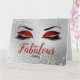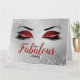 La tarjeta de cumpleaños grande del Purpurina Ruby Red Fabulous Eyes cuenta con un par de grandes tapas de ojos con un párpado purpurina rojo, un revestimiento de efecto diamanté con largos azotes negros sobre un fondo de efecto purpurina plateado. La palabra 'fabulous' está escrita en un guión a juego de Ruby Red con una pequeña corona de reina de plata colgando de la parte superior del bucle en la 'L'. 'Ten A' y 'Cumpleaños' en escritura negra más pequeña arriba y debajo de la palabra fabulosa. El interior de la carta es blanco y en el interior hay una pequeña corona reina de plata. En la parte de atrás, el fondo es el mismo efecto purpurina plateado que el frente y un pequeño par de los mismos ojos purpurinas Rojos Ruby y azotes negros están en el centro inferior. Diseñado por Jacqueline.