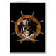 ¡Aargh! Piratee el cráneo, el remiendo del ojo, el gorra del pirata, y las espadas cruzadas sobre la rueda de una nave de madera antigua.