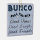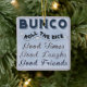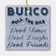 Los buenos tiempos, las buenas risas y los buenos amigos resumen un buen juego de Bunco. Ruede las características de los dados tres dados de Bunco del blanco. Ornamento agradable de Bunco para un intercambio del regalo, un premio de Bunco o una decoración de Bunco. Exhiba este ornamento de Bunco en un árbol, cuelgue de su espejo de la vista posterior de los coches o exhíbalo en su oficina.