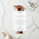 Diseñado para coordinarse con nuestra colección de bodas Somerset, este elegante menú nupcial cuenta con una hermosa acuarela de color burdeos, óxido, naranja quemado, rosas blancas de marfil, hortensias, existencias y disposición de la vegetación. Personalízalo con los detalles de su boda fácil y rápidamente, simplemente pulse el botón personalizar para reorganizar y formatear el estilo y la ubicación del texto. Doble cara. El estudio del gato feliz