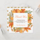 Pretty thanksgiving party thank you card with autumn fall leaves in orange, yellow and green. Perfect for an autumn fall thanksgiving party. The words can be changed to suit your own details or requirements.